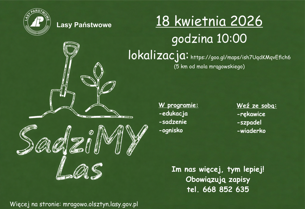 18 kwietnia o 1000 serdecznie zapraszamy do wspólnego sadzenia lasu!