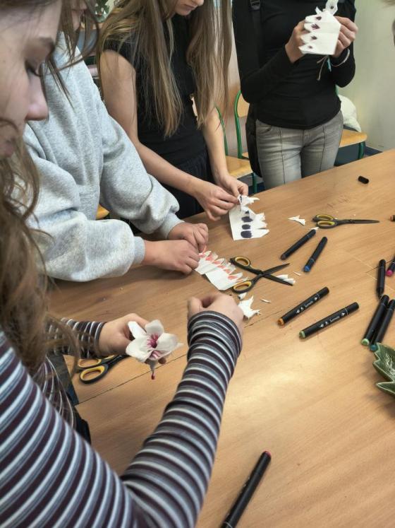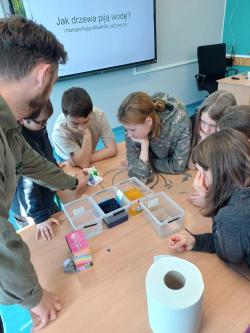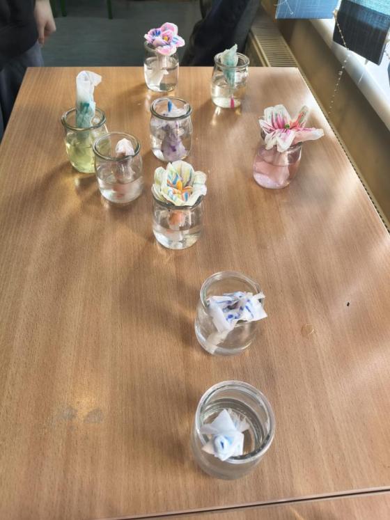 Dzieci doświadczalnie sprawdziły, jak drzewa piją wodę i przekonały się, że wcale nie jest to takie proste. Zobaczyły, jak woda przenika przez różne struktury, naśladując procesy zachodzące w naturze. Na zakończenie przyszedł czas na kreatywną część – warsztaty zwieńczyło tworzenie kolorowych, pachnących kwiatów z chusteczek, obrazujących wędrówkę wody od korzeni aż po sam czubek drzewa. 🌸✨