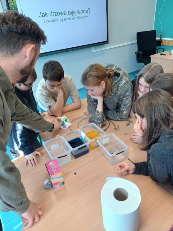 Uczniowie klas podstawowych mieli okazję posłuchać fascynujących opowieści o wodzie w lesie oraz wziąć udział w różnych warsztatach. „Lanie wody”, które zorganizowaliśmy wspólnie z Nadleśnictwem Strzałowo. I rzeczywiście – laliśmy wodę! 💧